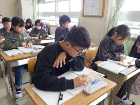 社会の学習です。歴史の学習が始まりました。気づいたことをグループで交流する中で,さらなる気づきをめざします♪