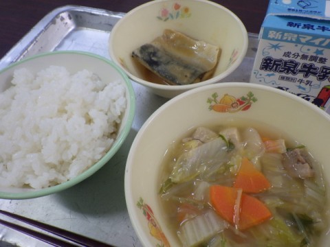 1月24日から30日は全国学校給食週間です。日本で学校給食が始まったのは、約140年前です。戦争で一時中断されましたが、戦後の食べ物が少ない中、アメリカの団体が食べ物を送ってくれたことで再開されました。このことを記念して学校給食週間ができました。今日の「すいとん汁」は、戦争中の食べ物が少ない中でよく食べられていました。