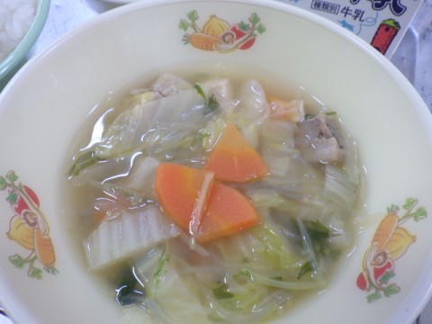 たまごは、たんぱく質・ビタミン・ミネラルをたくさん含みます。体の成長に必要な栄養素がバランスよく入っています。今日はスープに使用しています。
