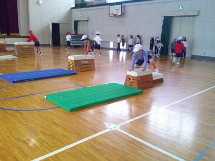 体育で「とび箱遊び」に取り組んでいます。