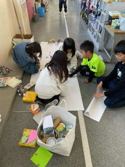 おもちゃ作りが順調に進んでいます。1年生を招待する「おもちゃランド」を成功させることを目標に頑張っています。
