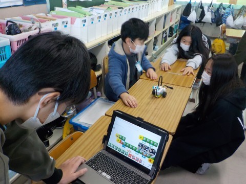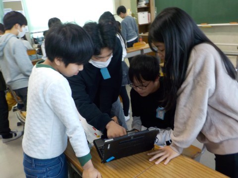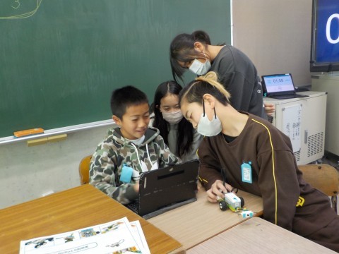 プログラミングの学習を行いました。班で作った探査機が求めている動きになるように,何度もプログラムを組み替えました。学習を通して,身近な日常にもプログラムされているものがたくさんあることに気づきました。