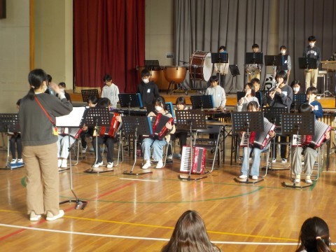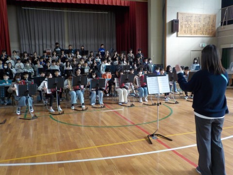 ファイナルコンサートに向けて,日々取り組んでいます。スローガンである「報恩謝徳~成長と感謝を届けよう~」に向けて頑張っています。クラス曲,学年合奏曲と合わせて3曲演奏します。本番まで残り約1週間,最後まで完成度を高めて保護者の方に最高の演奏を届けてほしいです。どの演奏でも心と音を一つにして演奏してほしいです。