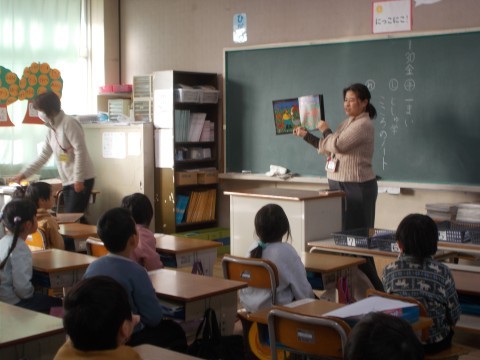 「とまとの会」の皆さんが,読み聞かせにきてくださいました。本を読んでいる間,BGMを流してくださったり,絵の意味を詳しく説明してくれたりしました。ありがとうございます。