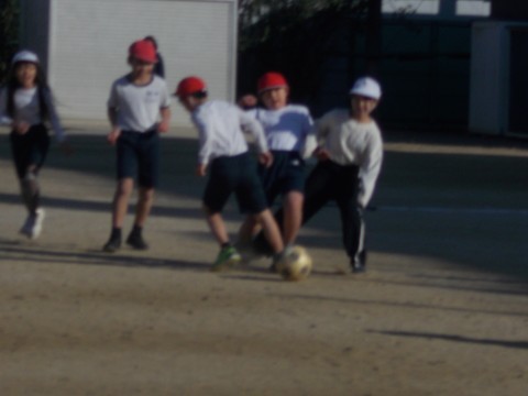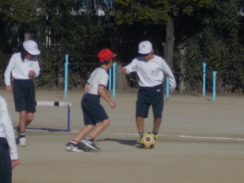 サッカーゲームをしました。ゴールが両端と真ん中にあるという,変形型でしたが,上手にゴールに向かってシュートを決めていました。
