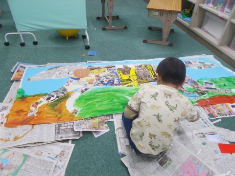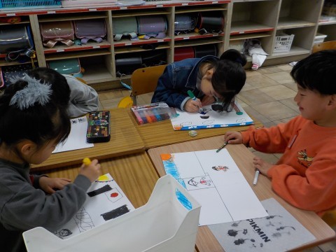 図形のプリントをゆっくり進めていました。また「馬」の絵を作製中です!大作です。