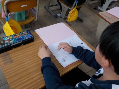国語では「もう一つの物語」の読み合いっこをしました。ふせんには,感想やアドバイスを書いて渡します。いろんなお話があって楽しいです。