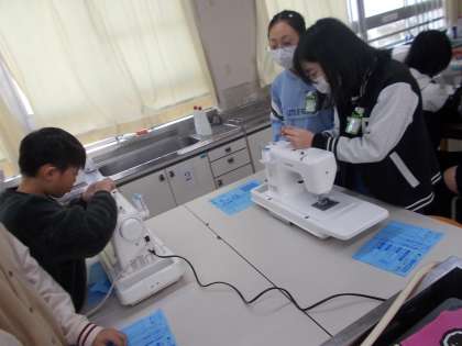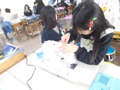 ミシンに下糸を入れたり,布を実際に縫ったりしました。