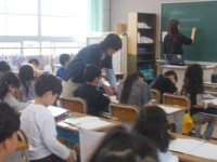 先生が読み聞かせをしてくれました。お話の世界に入って、落ち着いて授業を始めます。また、今日は、1年生を連れて、学校案内をします。説明文章をもう一度読み返して、本番に臨みます。