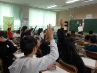 外国語では、ネイティブの先生と「How are you?」を使って、あいさつをしました。家庭科では、エプロンを作ります。どのデザインがいいのか、じっくり見ていました。算数では、約分のある分数×分数の仕方を練習していました。