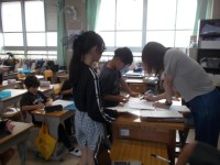 外国語では「Whay day is it?」を使って、天気や曜日などを答える練習をしていました。社会では「工業」や「商業」などから、身近な「野菜」な「けしごむ」について詳しく調べていました。発表の練習もしています。理科では、豆電球の付け方について学習していました。