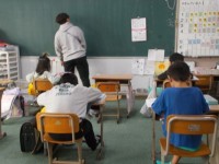 「まいごのかぎ」の物語を読みながら、わからない言葉の意味を先生から教わっていました。