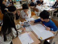 図工では「体育大会」の絵を描いています。先生と一緒に、ゆっくりと描き進めています。体育では、ボールを所定の位置に置くゲームをしていました。国語では「おおきなかぶ」の感想を書くために、挿絵に沿って内容を確かめていました。