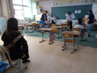 物カードを使って、ある物を当てていきます。ヒントを考えて、でも、答えは言わないで。想像しながら答えていました。