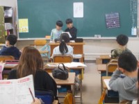 算数では、ひっ算の復習から始まりました。友だちの説明を聞いて、自分の考えと比べてみました。国語では新出漢字を使った言葉を発表しました。