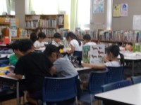 円の中外に分かれて,ボールの投げ合いっこをしています。味方チームと声を掛け合い,動きを考えていました。