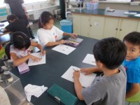 どちらがおおい?の学習では、同じ入れ物に入れて比べたり、コッブ何ばい分かを調べたりしました。