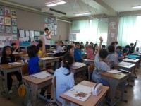 習字では,先生に見せてアドバイスしてもらいました。理科では,ヘチマの種を見せてもらったり,その後,この種はどうなるのかも学習しました。大きなヘチマでした!