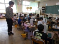 「くじらぐも」の発表会をします。その時「ハッピーラッキーグッディ」という歌を歌います。今日は,学年でこの歌を聞いて,意味を考えたり想像したりしました。これから練習していきます。