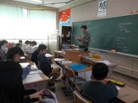 Tバッテングをしています。ボールを取って,チームで集まり「アウト!」と大きな声で言います。作戦を練って次の試合に備えます。