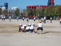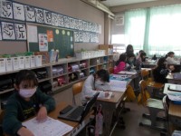 コンパスを使って円を描きます。コンパスを持つ位置に気を付けたり,「半径」を正しく測ったりしています。