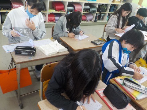 来月は,今学期最後の漢字大テストがあります。漢字ドリルで復習した後に,各々が自分に合った学習方法を選んでテスト勉強を行いました。