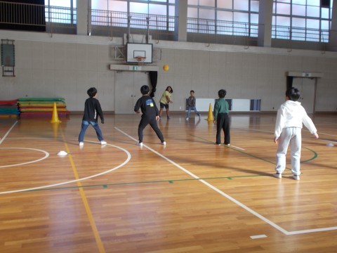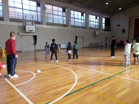 今日は,新1年生と一緒に,クリスマスカードを作りました。とっても上手にツリーの木とプレゼントの箱を表現していました。また,ドッジボール大会も進行中です。どのチームが優勝するのでしょうか。