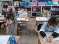 中あてをしていました。先生の笛の合図で,中の人・外の人が交代します。両手で投げる人もいますが,片手で投げる方が距離が伸びます。休み時間も練習しましょう!