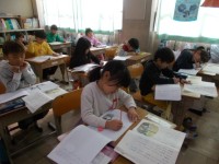 落ち葉やドングリ等を使って,作品づくりを始めます。先生の説明をよく聞いて,班で協力したり,まとめたりしていきます。また「ひとことにっき」をつけています。学校での出来事を,短い文章で綴ります。
