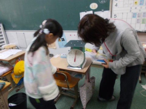 分数の計算を学習したり「重さ」をはかりを使って学習しました。