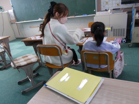 算数では,仮分数・帯分数の計算のしかたを学びました。また,テストをゆっくり進めていました。