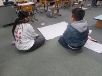 重さの単位「g」「㎏」「t」を使う場合,「ノートなら・・・」「バス1台だったら・・・」など,どんな物に使われるかを考えていました。また,絵から言葉を考えるクイズも行いました。また,昨日あった出来事を先生にお話しました。