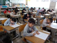 国語では,昔話を読んで「好きなところ」「おもしろかったところ」などを紹介する文章を書いています。どんな本がおもしろかったのかな。また,班で発表会をします。司会進行の台本や,発表する内容を決めていました。
