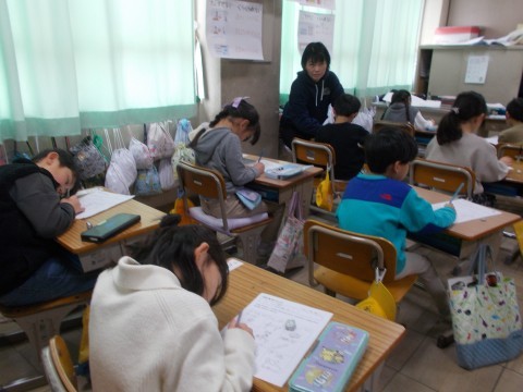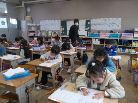 書写をしました。お手本をしっかり見て,じっくり取り組みました。また,生活科では「冬の催し」や「冬の物・事」などをビンゴ形式で描いていきました。「手が冷たい」や「雪」などがあがりました。