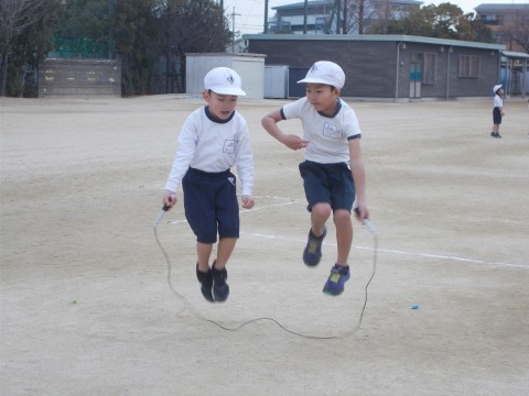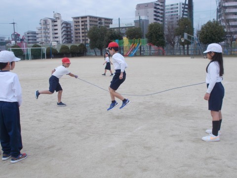 友だちと一緒に飛んだり,自分の記録を伸ばしたりしていました。友だちと一緒だと,笑いも起きて喜びもあって,楽しく活動できました。