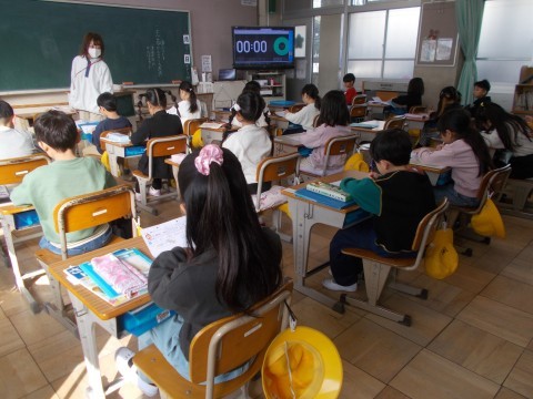 国語では「どうぶつの赤ちゃん」のカンガルーについて読み込み,どんな様子なのかを知りました。算数では,プリントの答え合わせをみんなでしていきました。