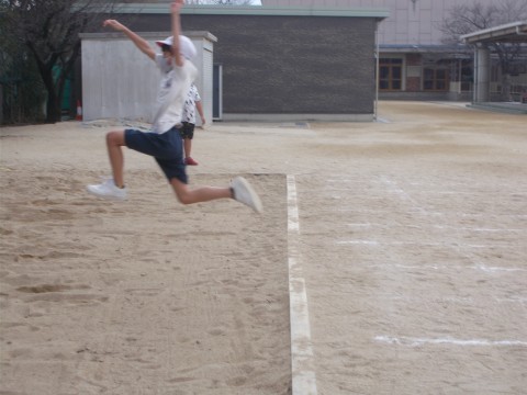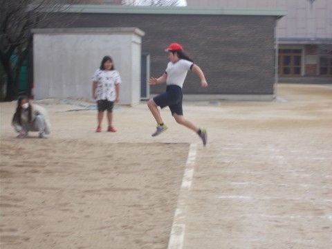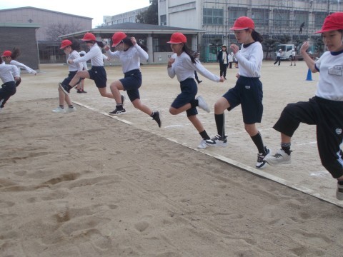 算数では,割合を使って効果的なグラフのつくり方を学びました。体育では,走り幅跳びの練習です。後ろに尻もちをつかないように,前へ前へ体重を移します。