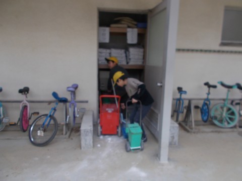 掲示委員会の人たちが,玄関前を掃除してくれたり,体育倉庫やラインカー置き場を掃除してくれたりしました。ありがとう!!