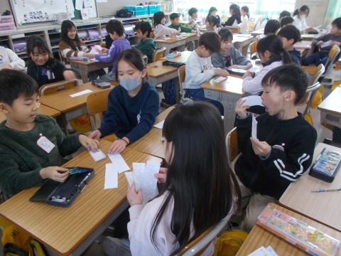 生活科では,自分のいいところを友だちが教えてくれました。うれしいですね!漢字の学習では「転売」という熟語を発表していました。難しい言葉も知っています!