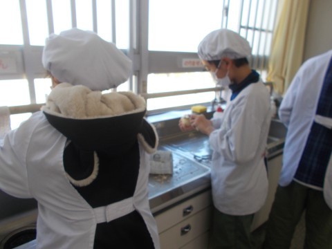 「いももち」を作っています。じゃがいもをむくこと・ゆがくことは,これからの食生活に大いに役立つ授業です。しっかり覚えていてください。