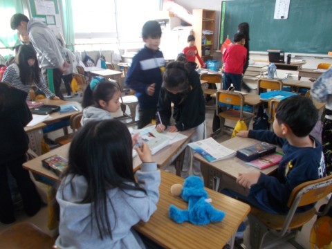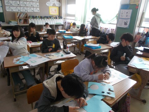 音楽では,最後に伸ばす音を,伸ばしすぎないように拍を注意して歌いました。国語では,友だちの書いた文章を読んで,自分と同じところ,違うところを考えました。図工では「プチプチ版画」を作製中です。