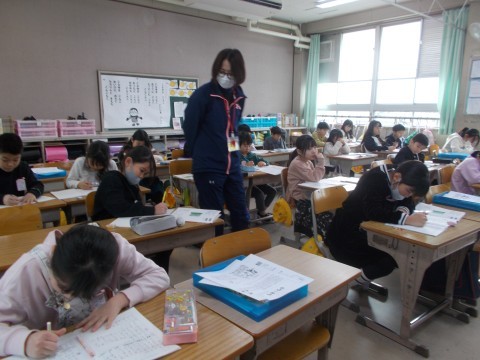 算数では,復習を兼ねて,計算問題に取り組みました。図工では,友だちの絵を見て,アドバイスをしていました。国語では「ようすを表す言葉」を集めていました。