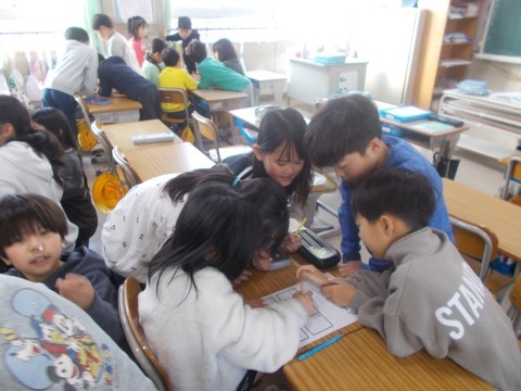 体育の時間に行うゲームのルールを確認し合ったり,作戦を立てたりしていました。また,先生から,今日の時間割や予定を教えてもらいました。