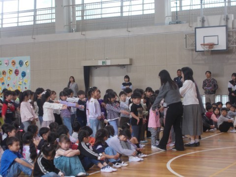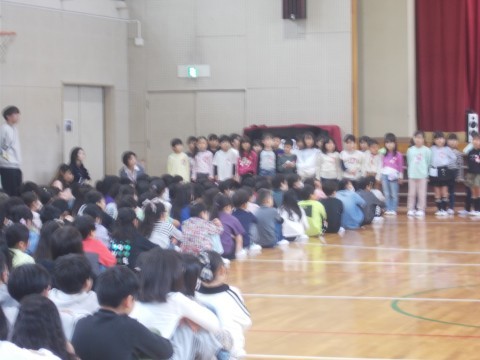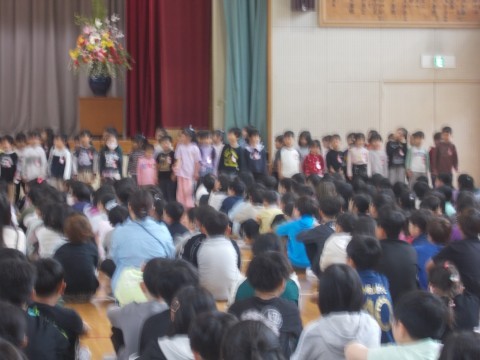 今日は,1年生と2~6年生が「これからよろしくね!」とあいさつをする時間を設けました。2~6年生が校歌を歌ったり,1年生が定位置に並ぶ練習をしました。これから,朝会や行事があるときは,このように並びます。覚えておいてね!