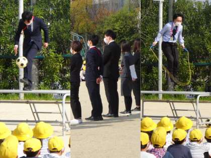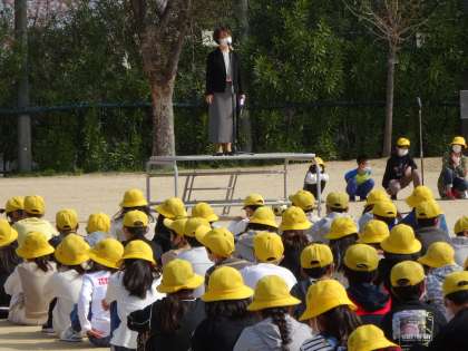 新しく赴任した教職員の挨拶のあと,校長先生からは,1つ進級した学年それぞれに励ましの言葉がありました。特に,6年生に対しては「最高学年」「リーダー」としての期待を込めた言葉がありました。