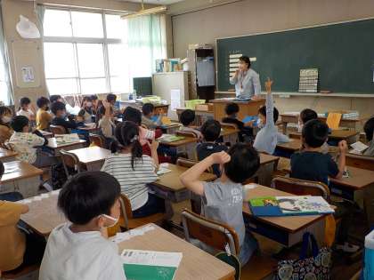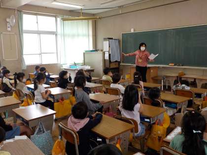 1年生はとてもよく先生の話をきいています。ひとつずつ小学校のことを覚えていっています。どのクラスもやることも早く,本当に感心します。