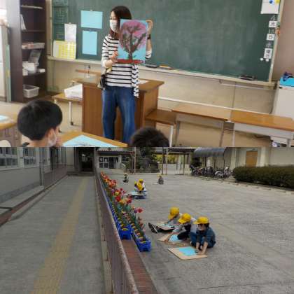 天候もよくなり,外に出て,はるの花を見つけ,絵画に取り組んでいます。