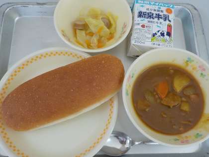 今日から給食が始まりました。新しいクラスのお友達と協力して食べることができました。まだ,前をむいての黙食ですがいい顔をして食べていました。