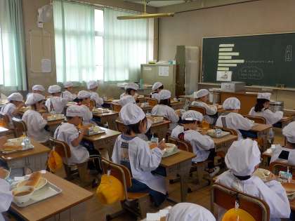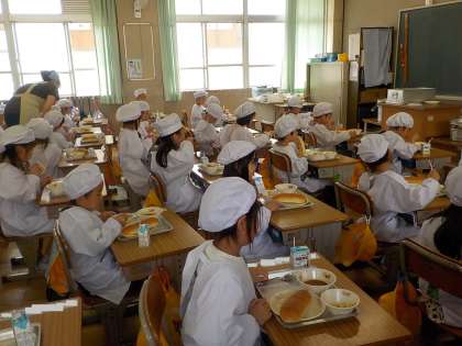 1年生も今日から給食です。初めての給食なので,4時間目から準備をしました。