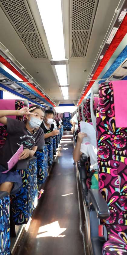 出発式を終えて、一泊二日、宿泊学習へ出発です。
